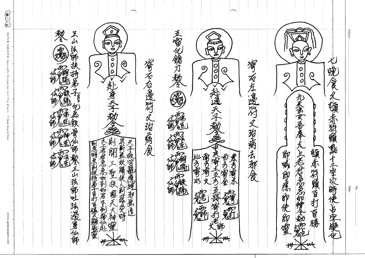 六壬道法供奉主神为先天尊神《六壬仙师》合众神明为;先天大神、和合祖师、茅山法主、吕山法主、白鹤仙师、斗战胜佛、齐天大圣、武教尊神、少林祖师、铜皮仙师、铁骨仙师、千里眼、顺风耳!