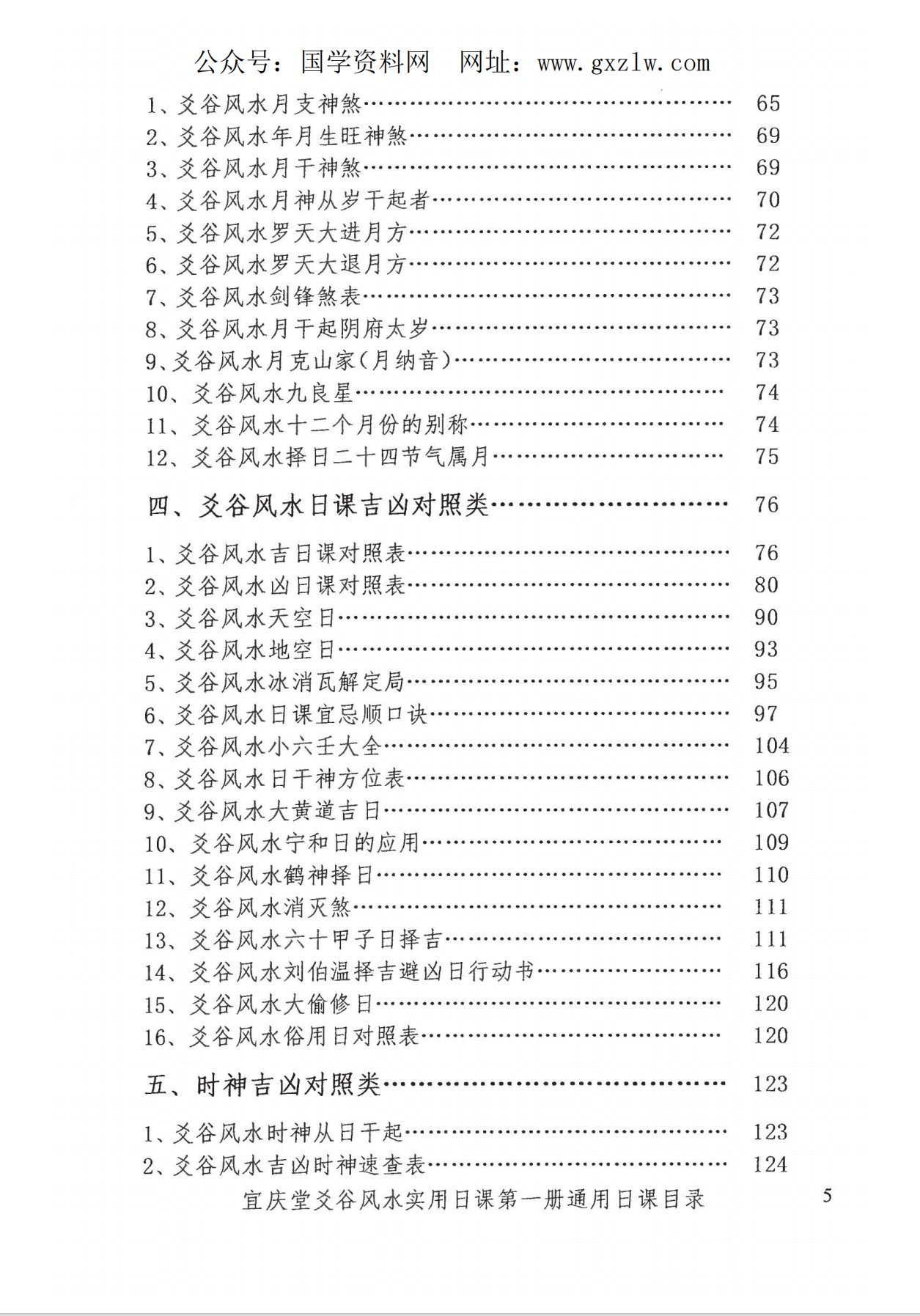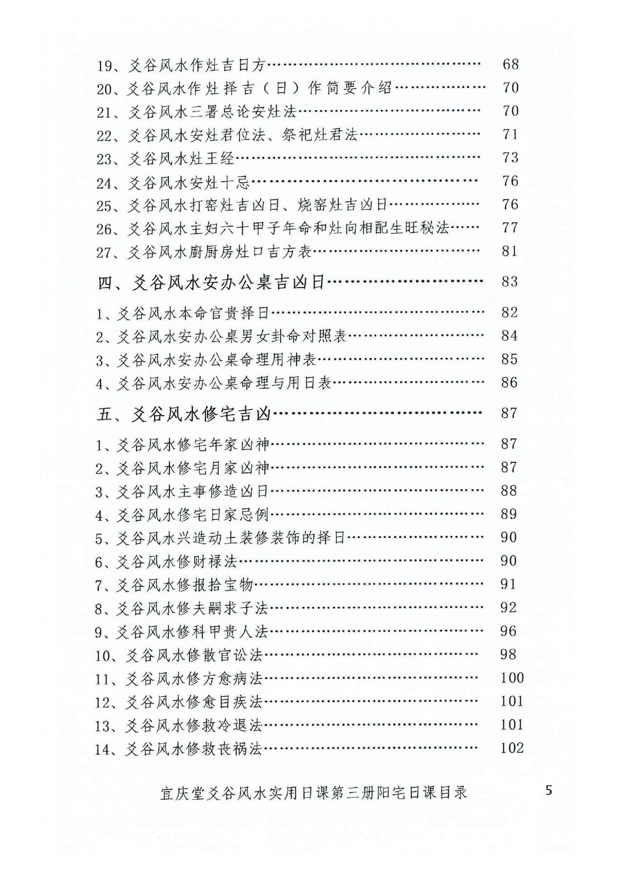 《第五册风水日课》是做风水常用的日课和师傅本人用日宜忌,择年月日时法、龙运山运择日、择日化煞,造命格局择日、三元九星,斗首择日等
