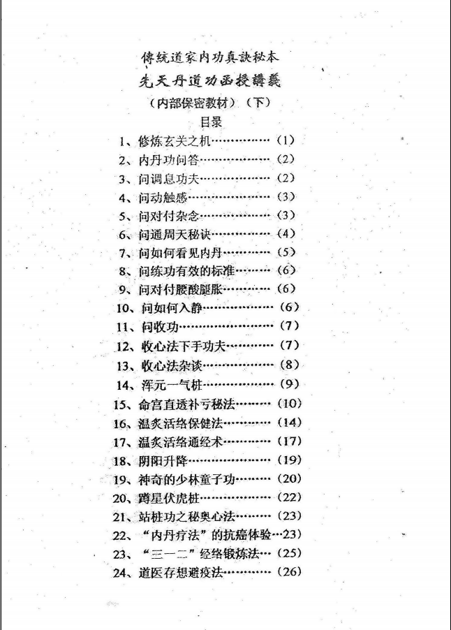 传统道家内功真诀秘本–先天丹道功函授讲义 2019-06-30 气功养生 下载说明:由于部分文件比较大,下载速度可能会慢些;文件格式为PDF文件。手机与电脑上安装WPS软件就都可以观看!如果下载不成功或链接失效,可以加管理微信:ddzlwcom 发付款截图即可补发! 境外的朋友可以在下方选择paypal支付哦! 资源下载下载价格180 术币VIP免费升级VIP立即购买 0