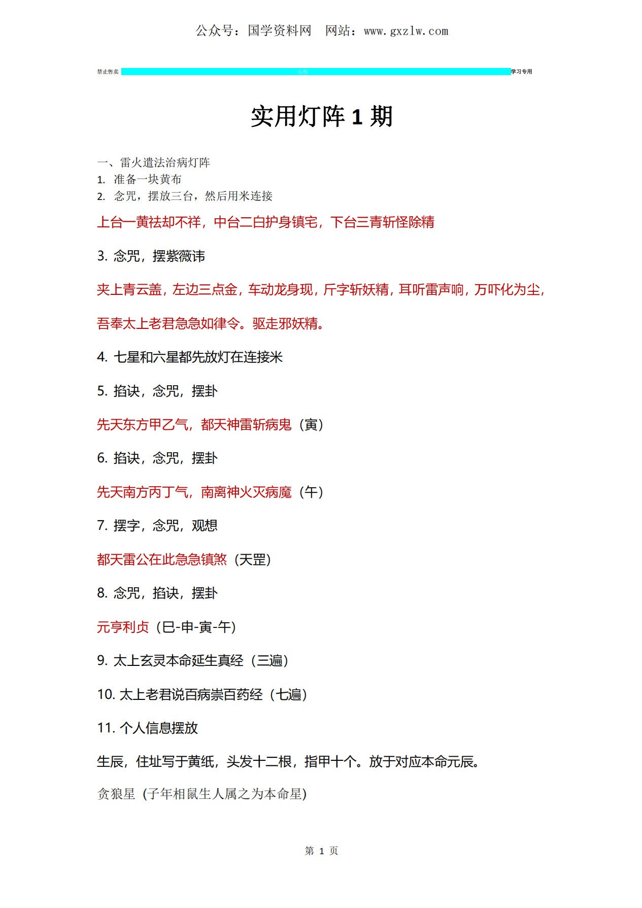七、七星百解神煞灯1.顺序2.念咒3.经