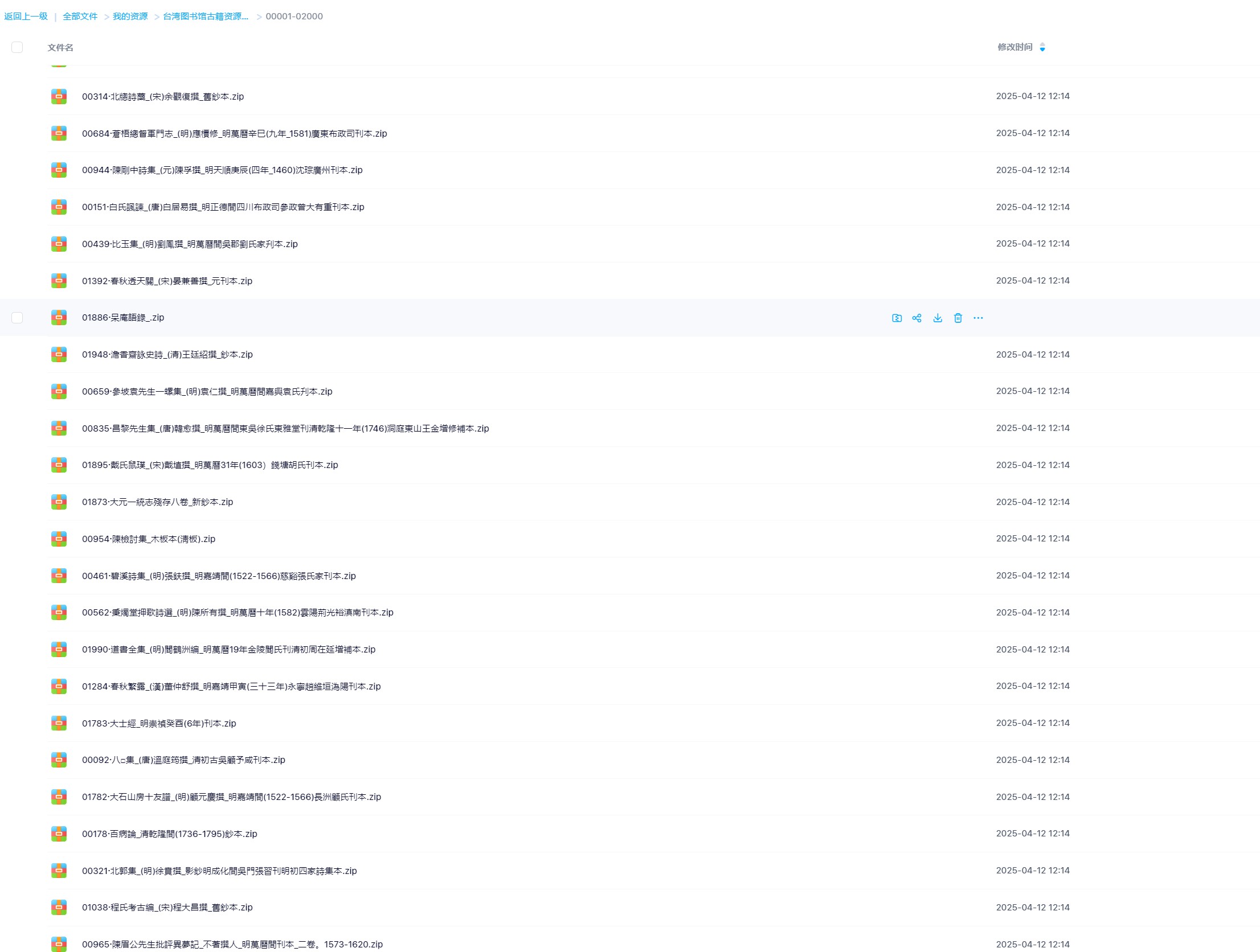 台湾图书馆藏古籍一万七千册电子版 2025-04-12 其他精品 内容超级多大小约1.7T左右,仅仅目录就有一千多页,需要的要准备足够的网盘空间!! 点击下载了解具体目录情况:【新】台湾馆藏目录 资源下载下载价格580 术币VIP免费升级VIP立即购买 0