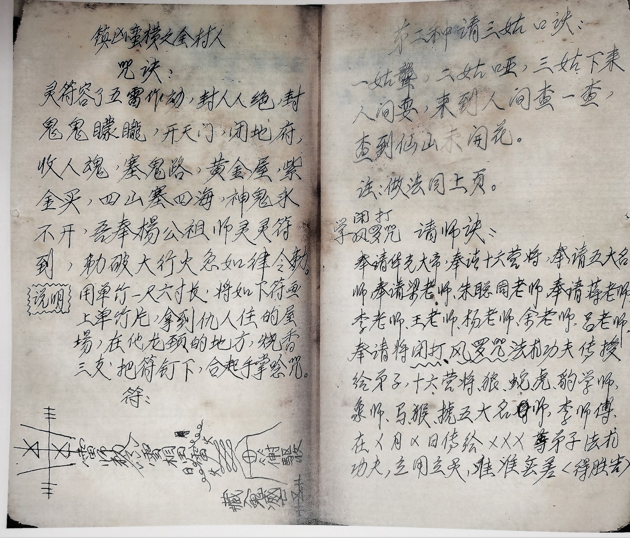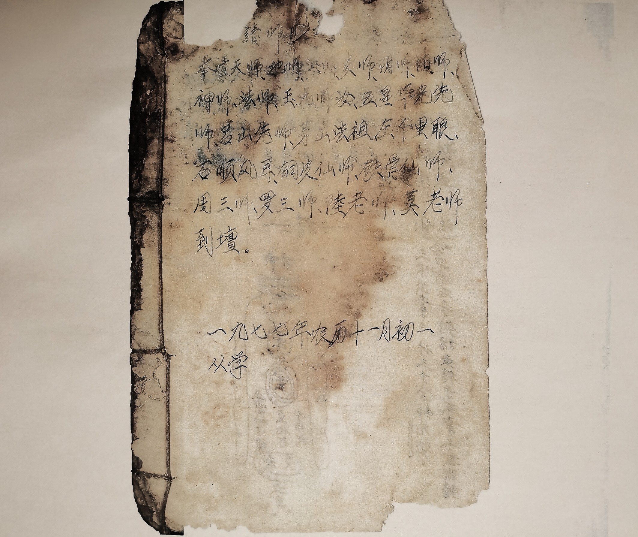 此资料年份为一九七七年,是华光老师傅自编写整理的一套秘法教材,全书从发教开始,从头到尾讲得非常系统,核心内容,口工细节也都一一记列出来,这是在大多数法本中极其罕见的,都说口工口工,口传功夫,既然是口传,又缘何抄录书上;依据历史情况猜测,作者经受文革时期(66~76年),而此书又抄于77年,特殊时期已经过去,关于“旧物”的各方面开始放宽放松,估计是为恐失传,把历来不见书本的口工内秘,也记于纸上,抄录了下来。