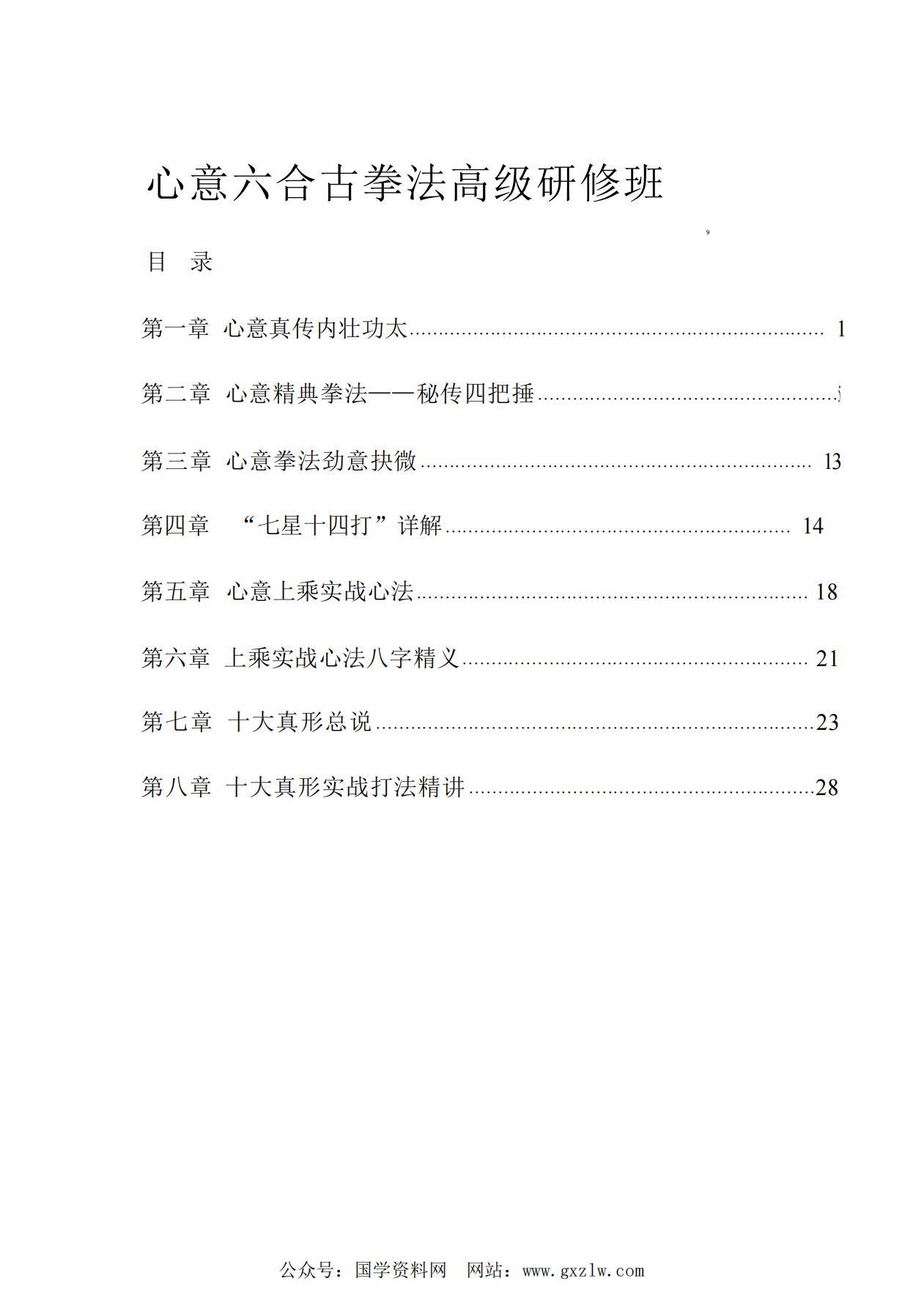 心意六合古拳法初、高级研修班合集85页独家优化电子版
